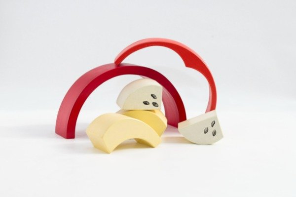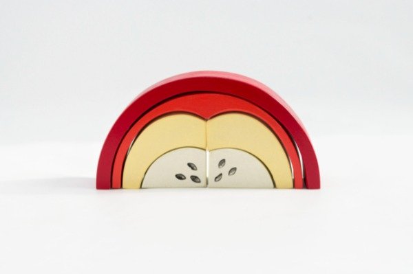 Bloques de construcción con características de frutas, estas ayudaran con la motricidad, distinción de colores, formas, tamaños, pesos.