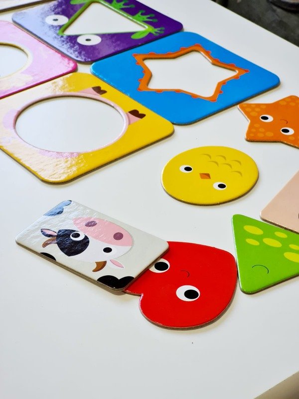 Lo divertido es combinar elementos de colores extraíbles de diferentes formas para reconocer al animalito.