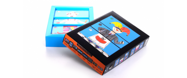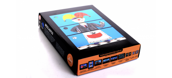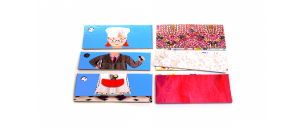 Rompecabezas para armar ocho personajes divididos en tres partes, combinando cabeza, cuerpo y piernas.